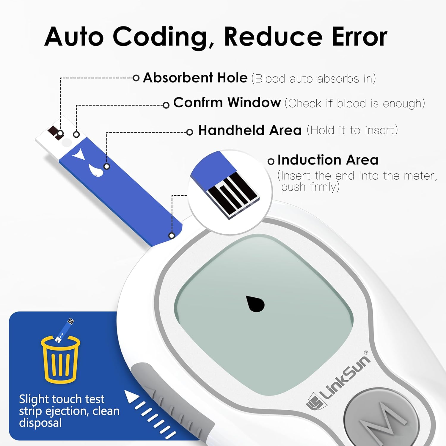 Accurate and Reliable Testing: LinkSun G-425-3 blood glucose meter adopts advanced detection and production technology to provide more accurate and reliable results. It has an accuracy of up to ±12%, complies with the ISO 15197:2013 standard, and has not had any market recalls in the past 20 years.