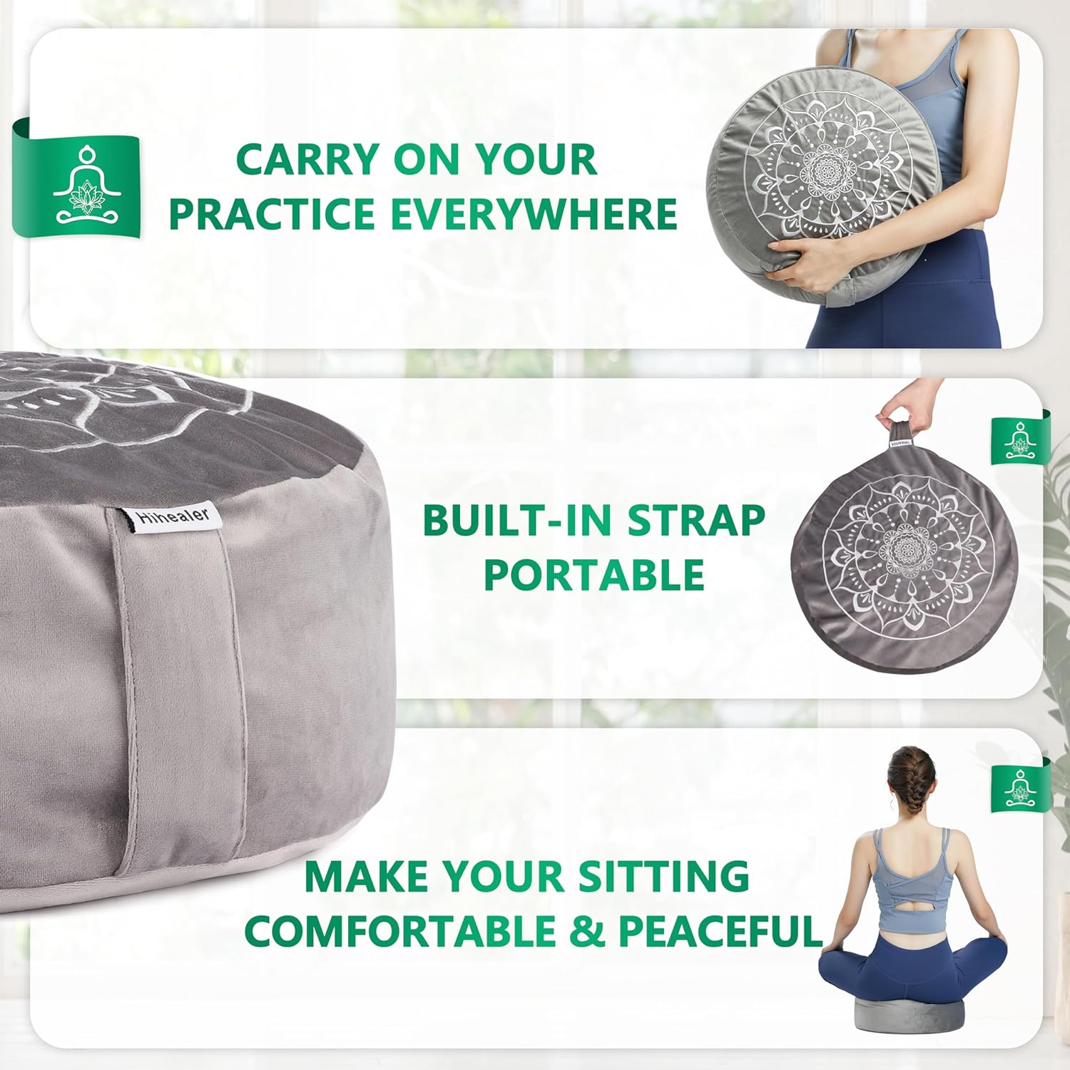 Comfort and Support: The large, ergonomic design provides exceptional comfort and support for extended meditation sessions