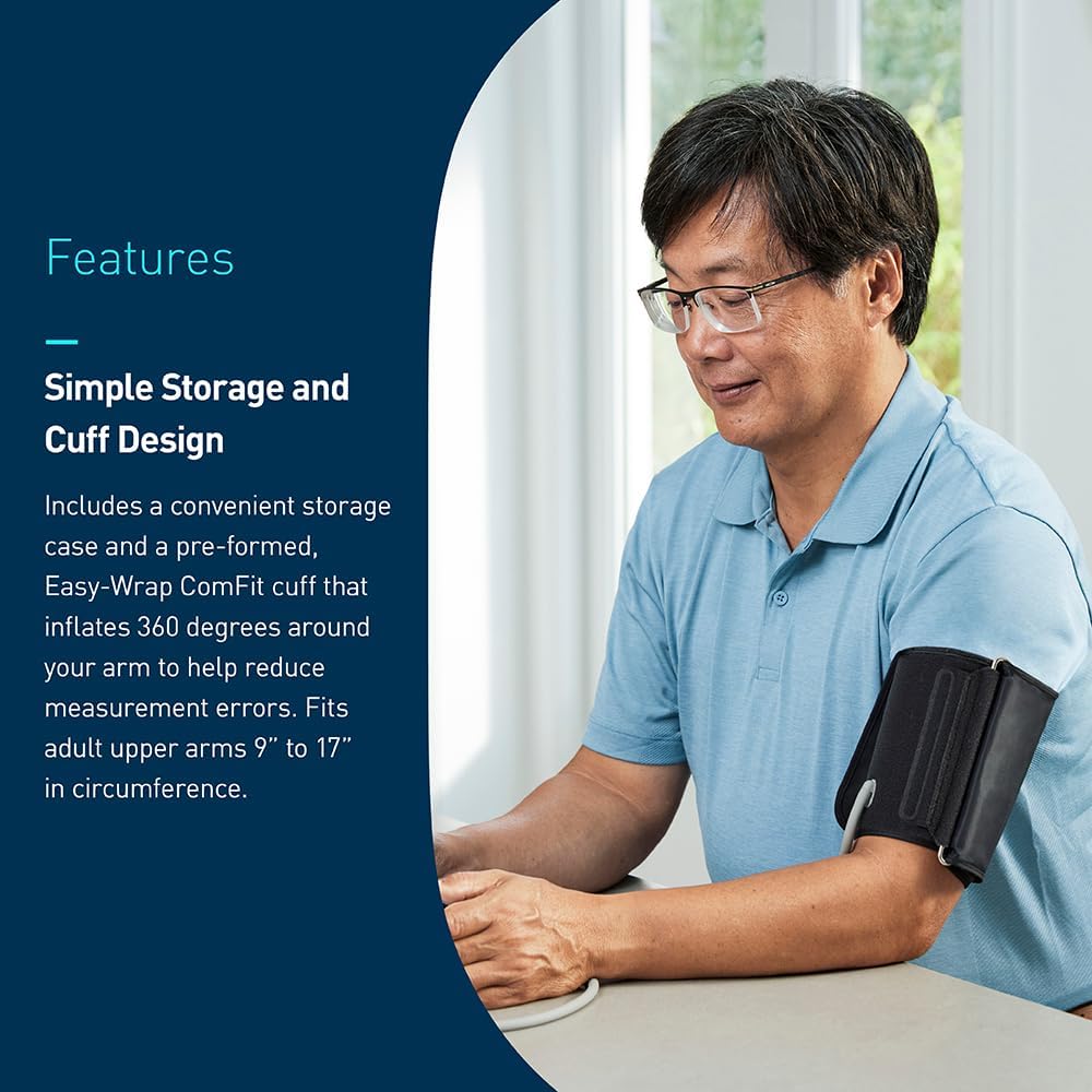 EASY STORAGE & COMFORTABLE CUFF: Includes a storage case and a soft, wide-range D-ring cuff (fits 9”–17” arms) with a contoured design for better fit and comfort