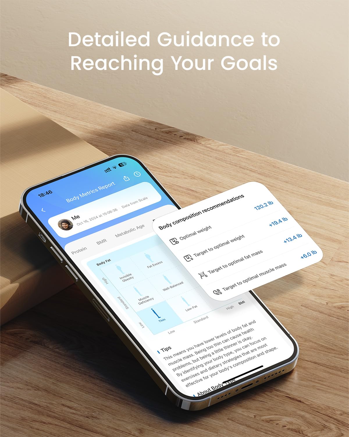 18 Body Analyses: The Renpho Health App introduces 5 additional body goal metrics along with 13 key indexes to the smart body scale, offering you a deeper understanding of your health and precise progress tracking towards optimal weight, fat, and muscle mass targets.